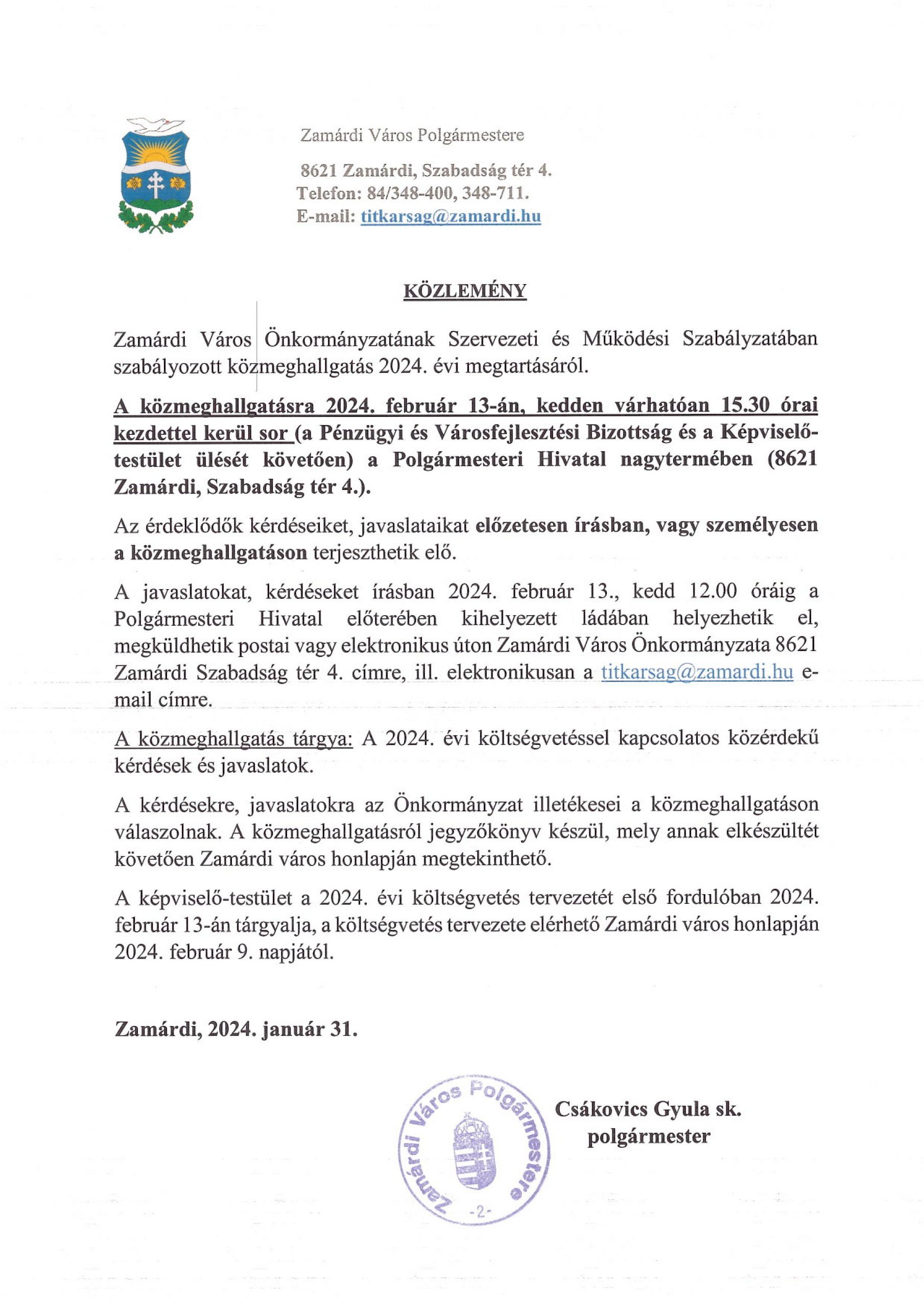 Közmeghallgatás – 2024. évi költségvetés