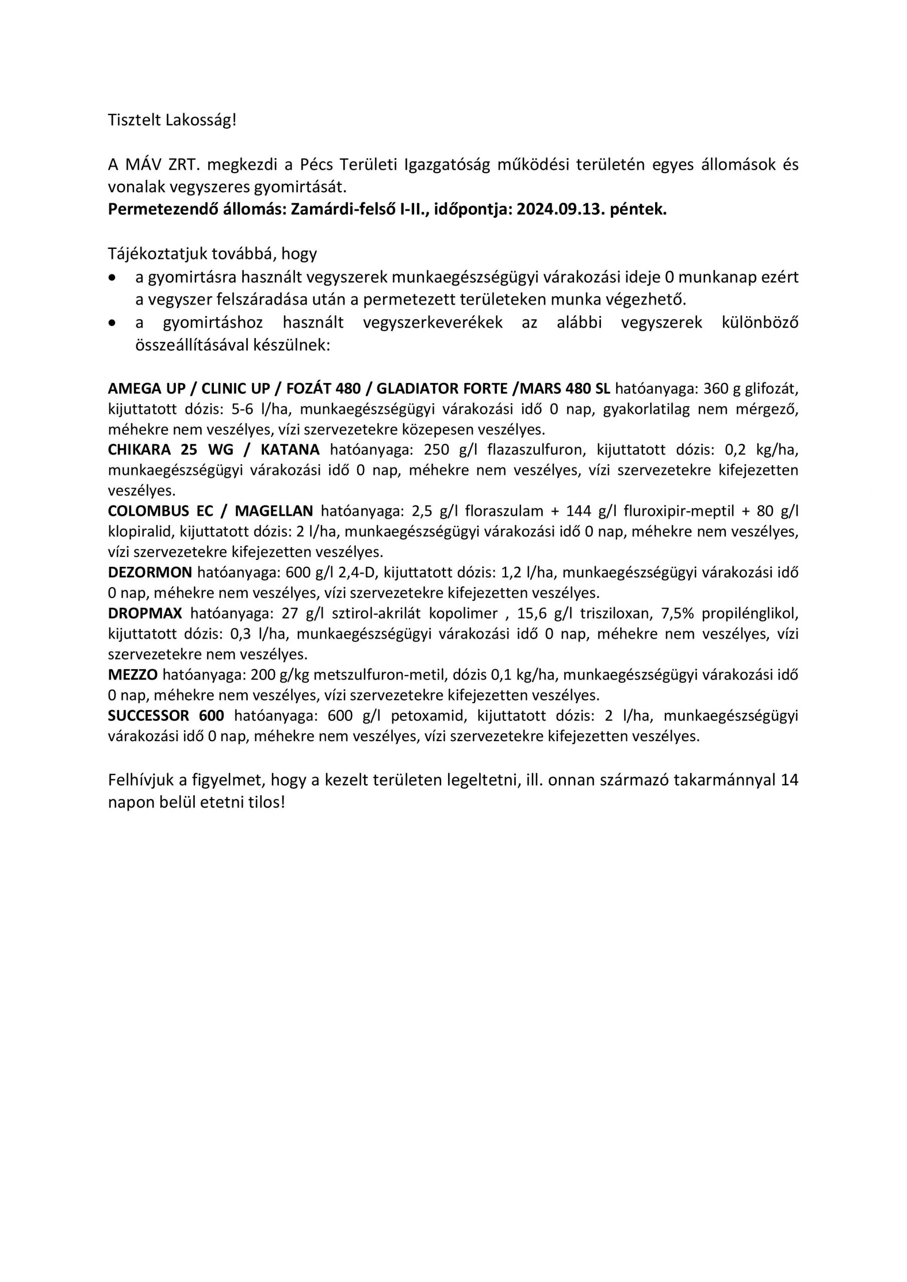 MÁV gyomirtás információk