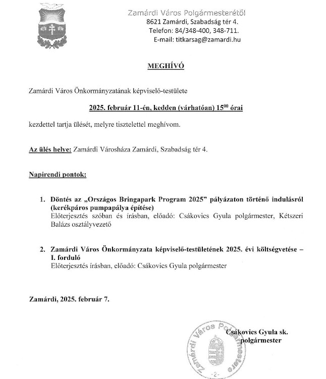 Meghívó – képviselő-testületi ülés 2025.02.11.