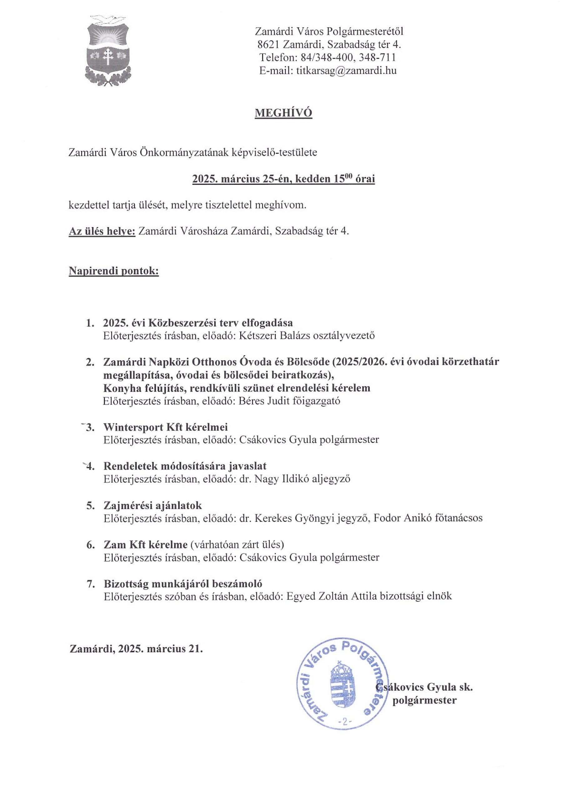 Meghívó – képviselő-testületi ülés 2025.03.25.