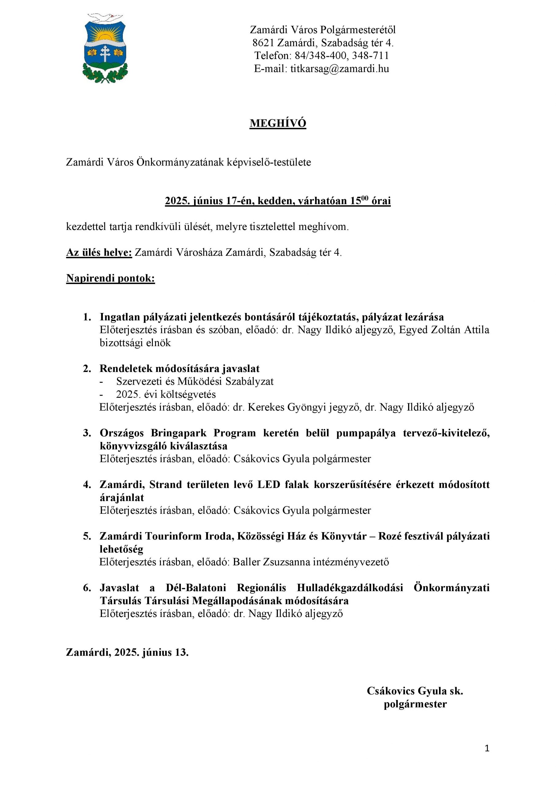 Meghívó – rk. képviselő-testületi ülés – 2025.06.17.