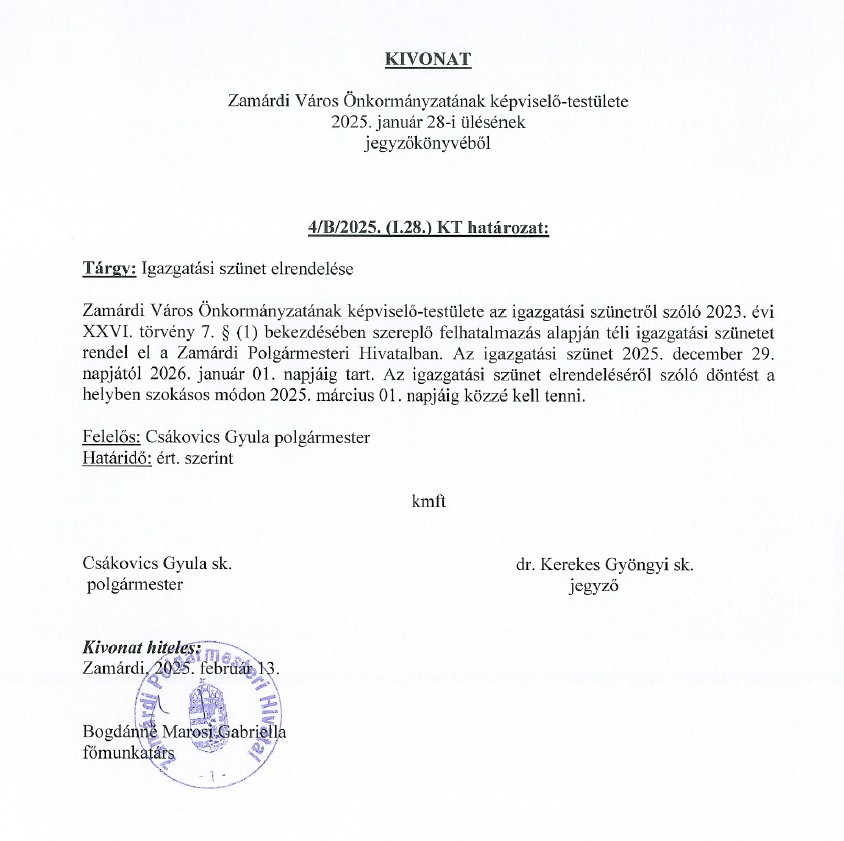 Tájékoztatás igazgatási szünetről